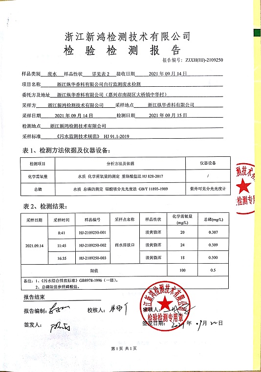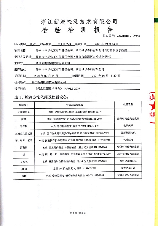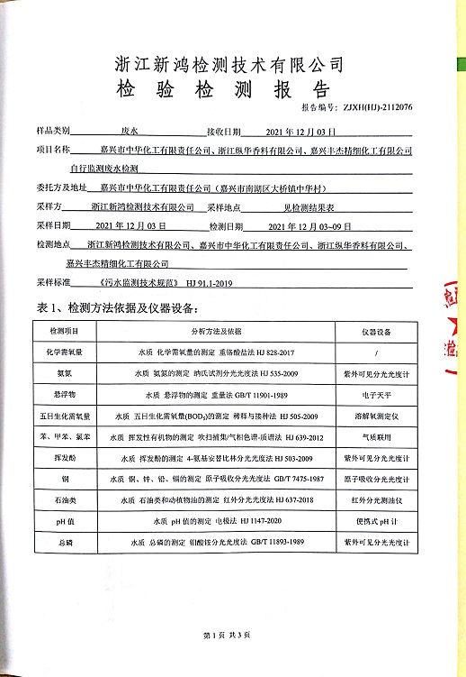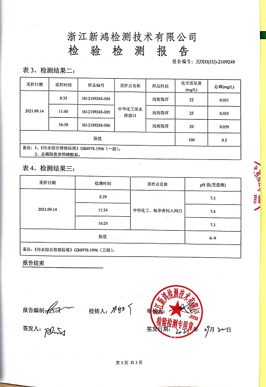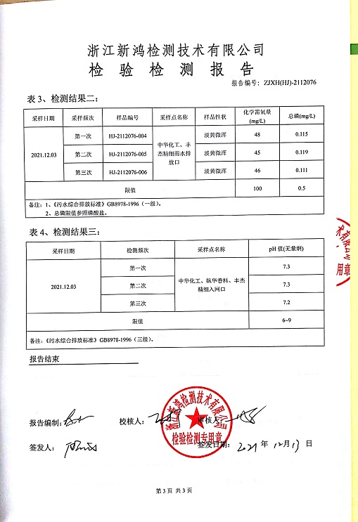 報(bào)告名稱:中華化工、縱華、豐杰3、4季度廢水檢測(cè)報(bào)告