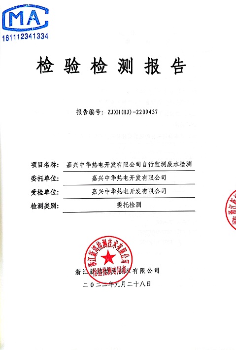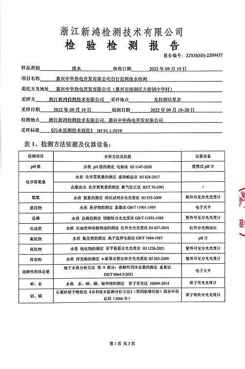 報(bào)告名稱:中華熱電2022年9月廢水檢測報(bào)告