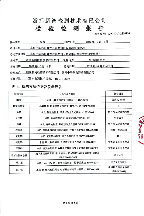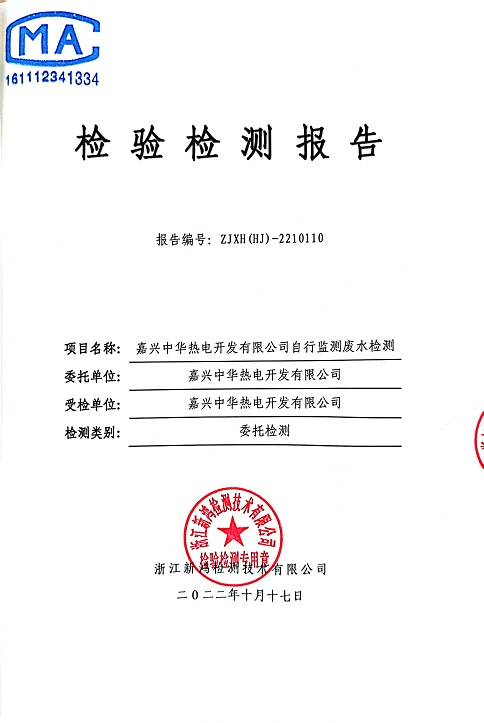 報(bào)告名稱(chēng):中華熱電2022年10月廢水檢測(cè)報(bào)告