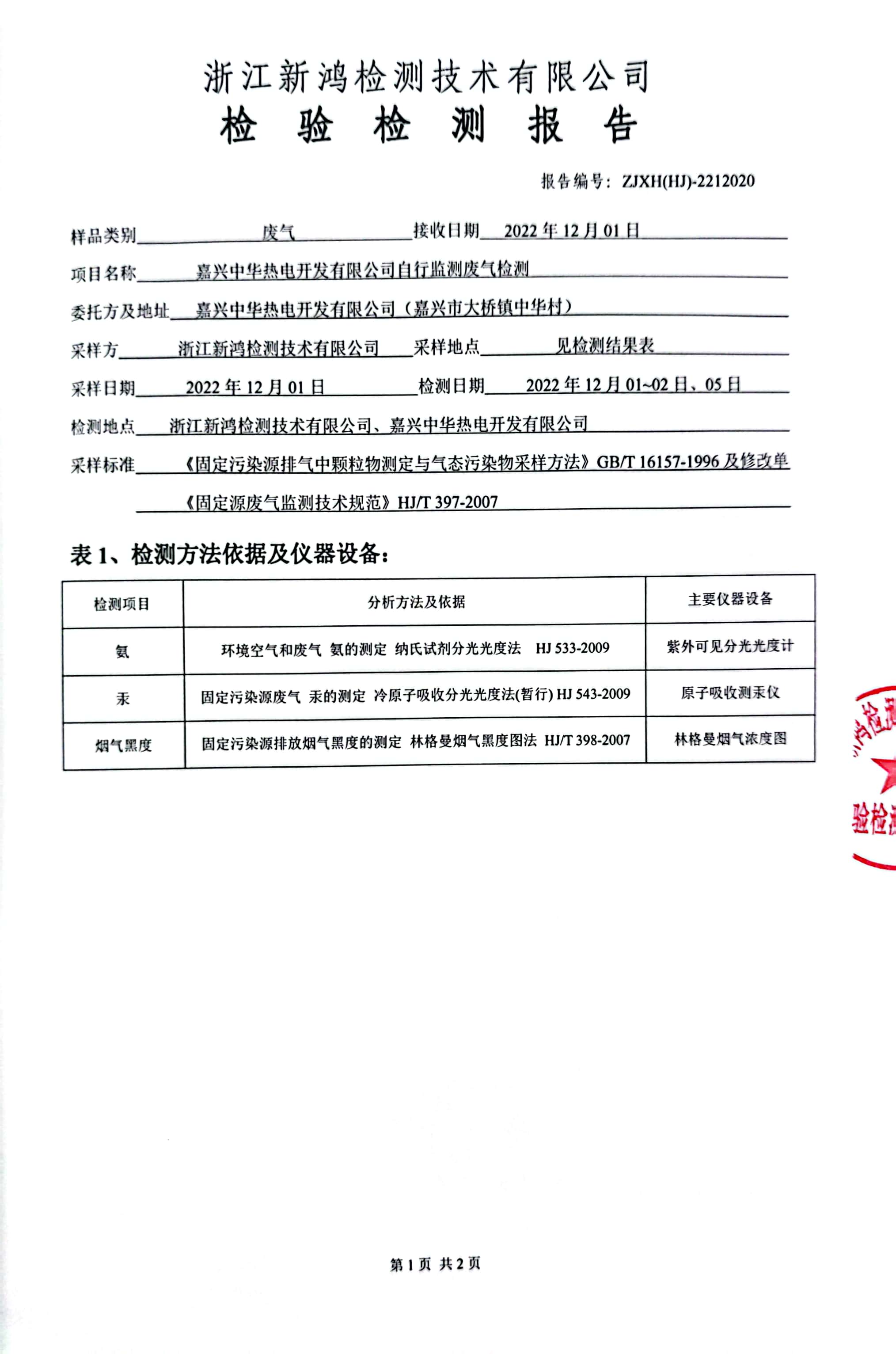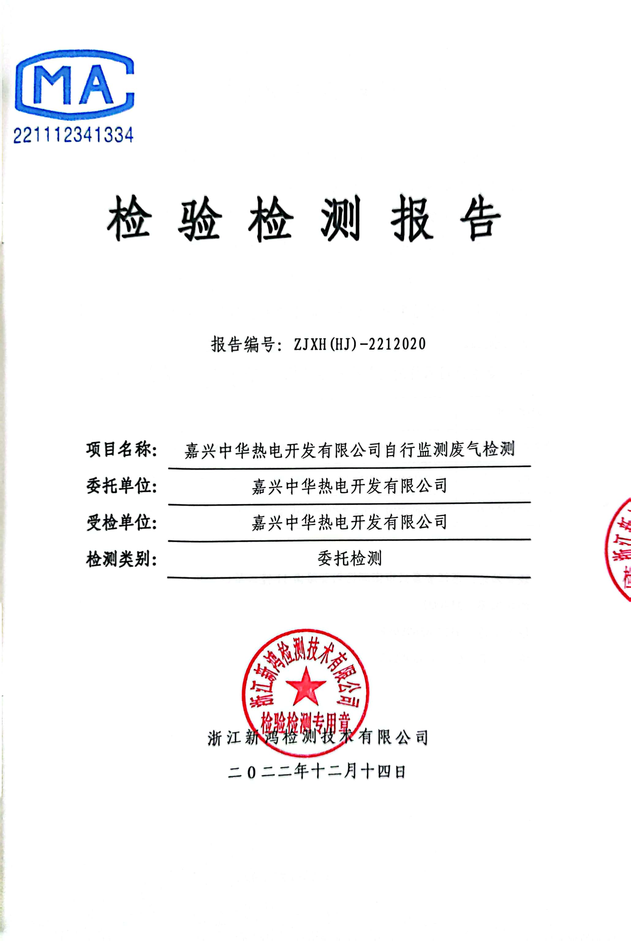 報(bào)告名稱:中華熱電2022年12月廢氣檢測(cè)報(bào)告