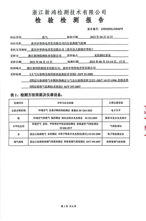 報告名稱:中華熱電2023.4廢氣檢測報告