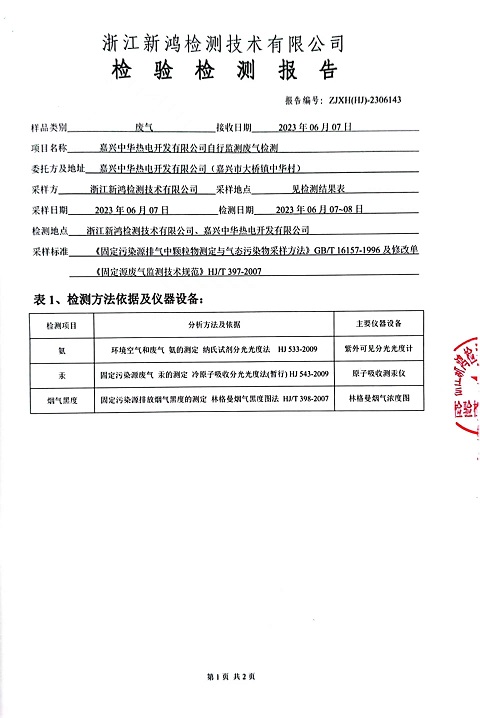 - 中華熱電6月廢氣檢測報(bào)告