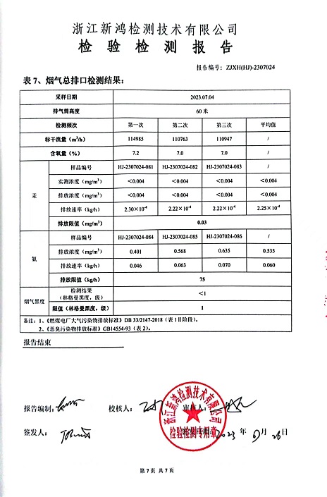 報告名稱:中華熱電2023.7月廢氣檢測報告