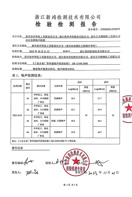 - 中華化工3季度噪聲檢測(cè)報(bào)告