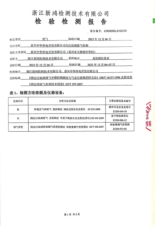 報(bào)告名稱:中華熱電2023年12月廢氣檢測(cè)報(bào)告