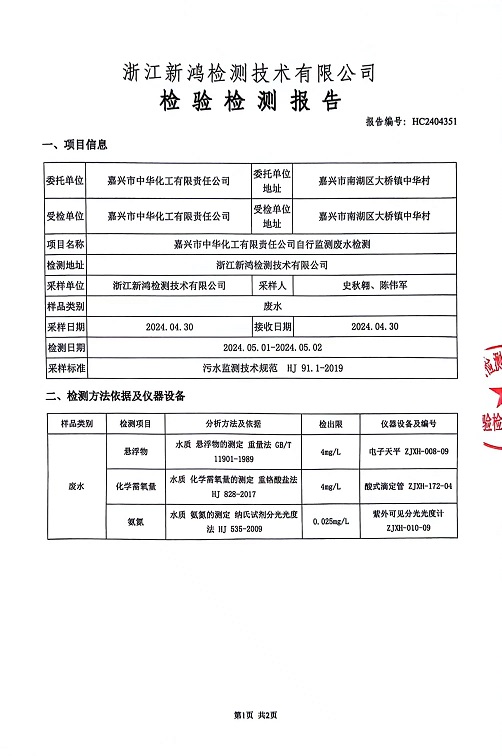 報告名稱:中華化工雨水4月檢測報告