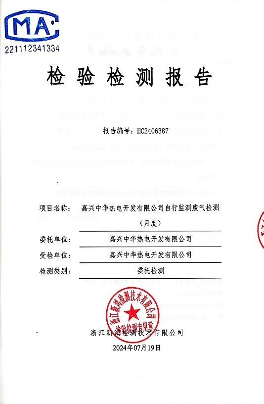 報(bào)告名稱:中華熱電7月廢氣檢測(cè)報(bào)告