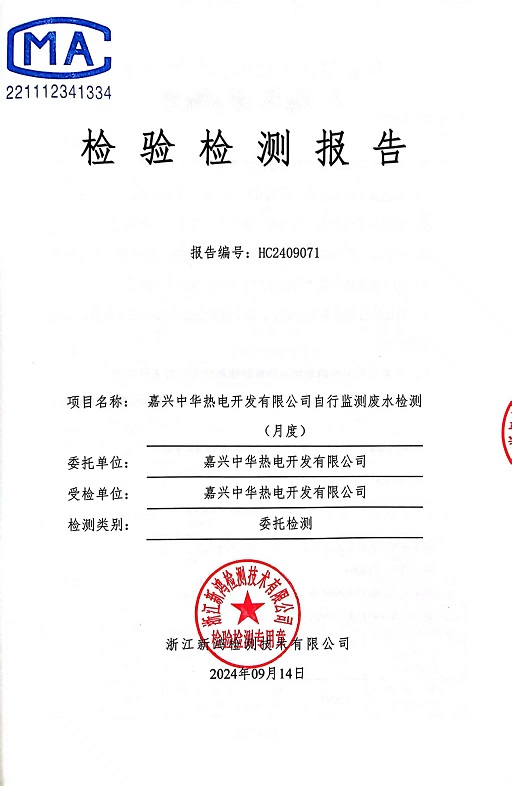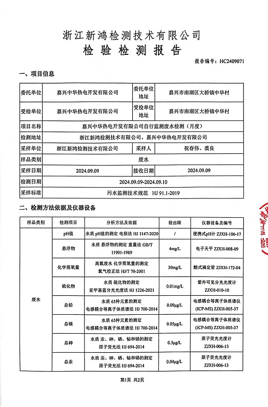 - 中華熱電9月廢水檢測(cè)報(bào)告