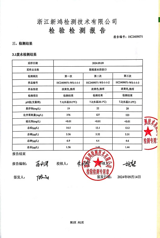 報(bào)告名稱:中華熱電9月廢水檢測(cè)報(bào)告