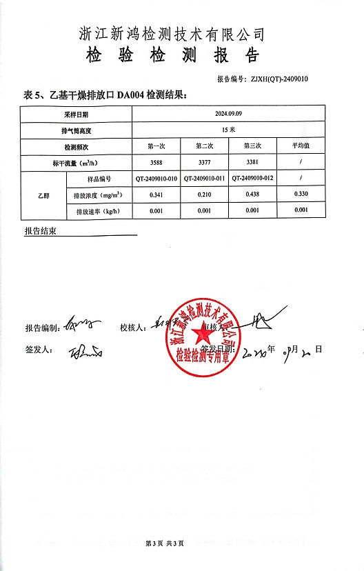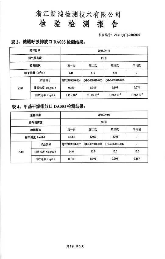 報(bào)告名稱:中華化工下半年乙醇檢測報(bào)告
