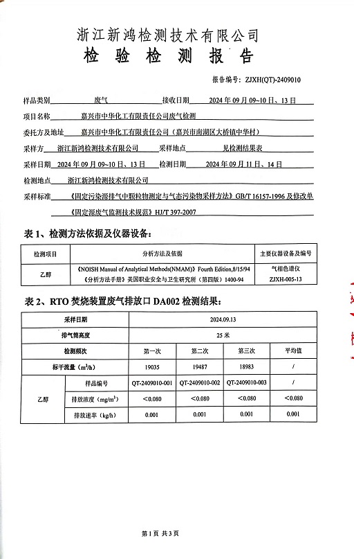 - 中華化工3季度廢氣檢測報(bào)告