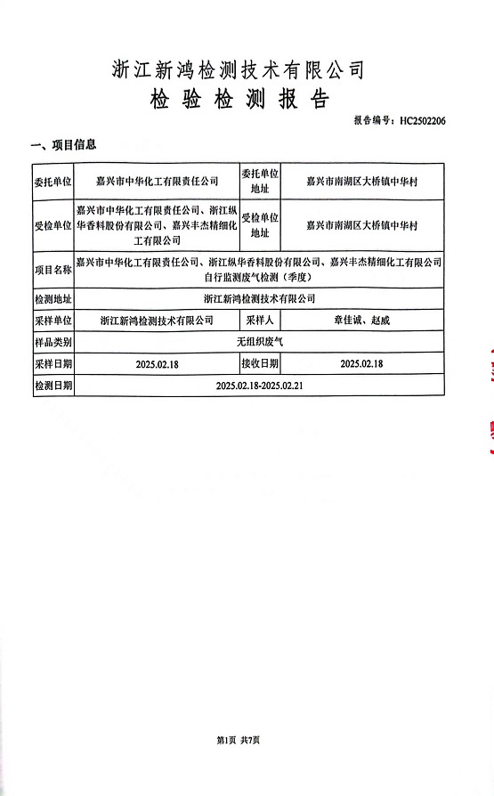 報告名稱:中華化工、縱華、豐杰2025年1季度廠界檢測報告