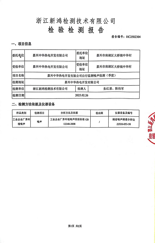 報(bào)告名稱:中華熱電2025年1季度噪聲檢測(cè)報(bào)告