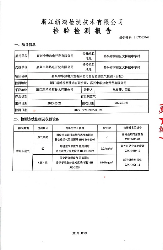 - 中華熱電6月廢氣檢測(cè)報(bào)告