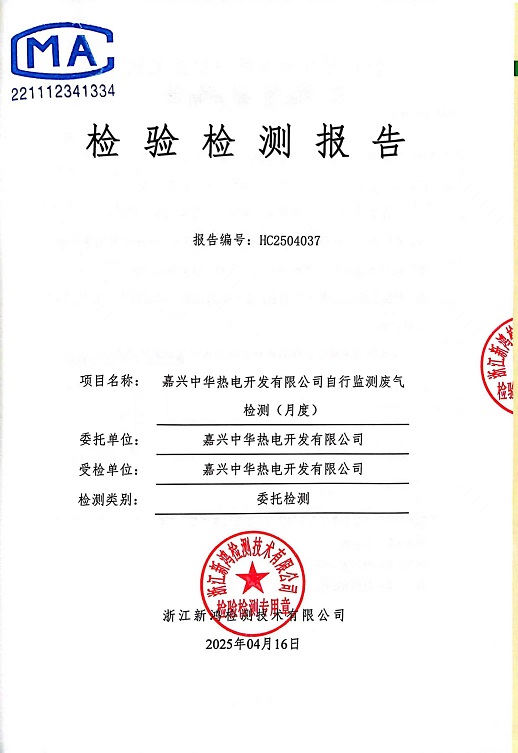 報告名稱:中華熱電4月廢氣檢測報告