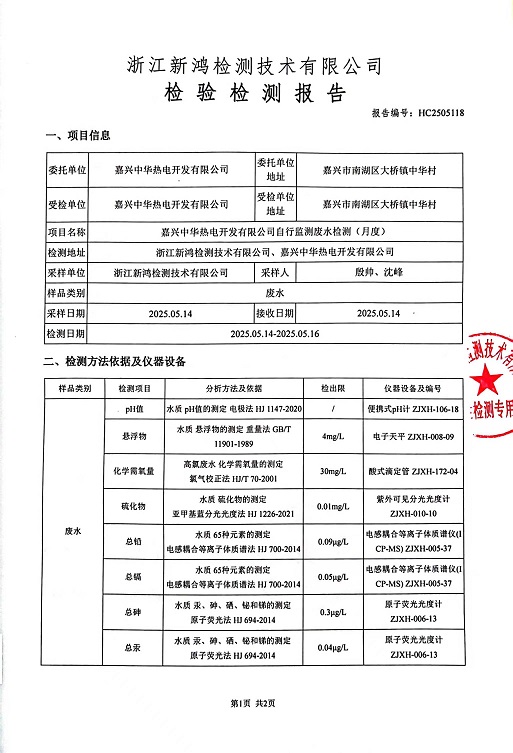 報(bào)告名稱:中華熱電5月廢水檢測(cè)報(bào)告