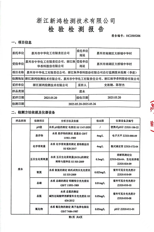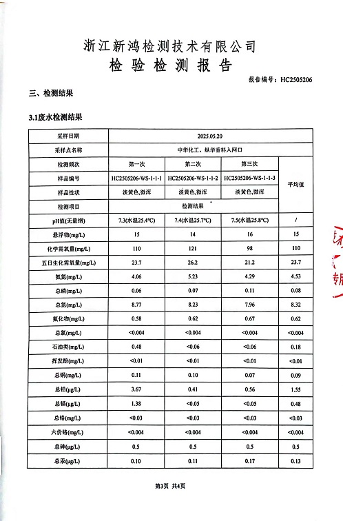 報(bào)告名稱:中華化工2季度廢水檢測報(bào)告