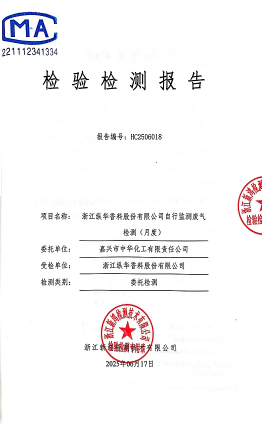 報(bào)告名稱:縱華6月廢氣檢測報(bào)告