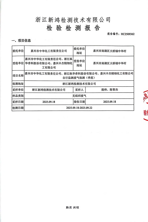 報(bào)告名稱:中華化工3季度廠界檢測報(bào)告