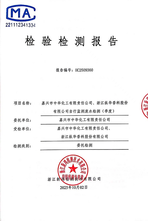 報(bào)告名稱(chēng):中華化工3季度廢水檢測(cè)報(bào)告