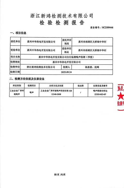 報(bào)告名稱:中華熱電3季度噪聲檢測報(bào)告