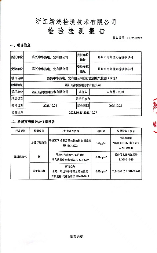 報(bào)告名稱:中華熱電廠界4季度檢測(cè)報(bào)告