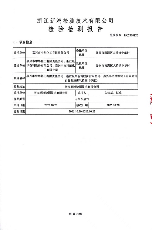 報(bào)告名稱:中華化工廠界4季度檢測報(bào)告