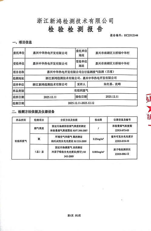 報告名稱:中華熱電12月廢氣檢測報告