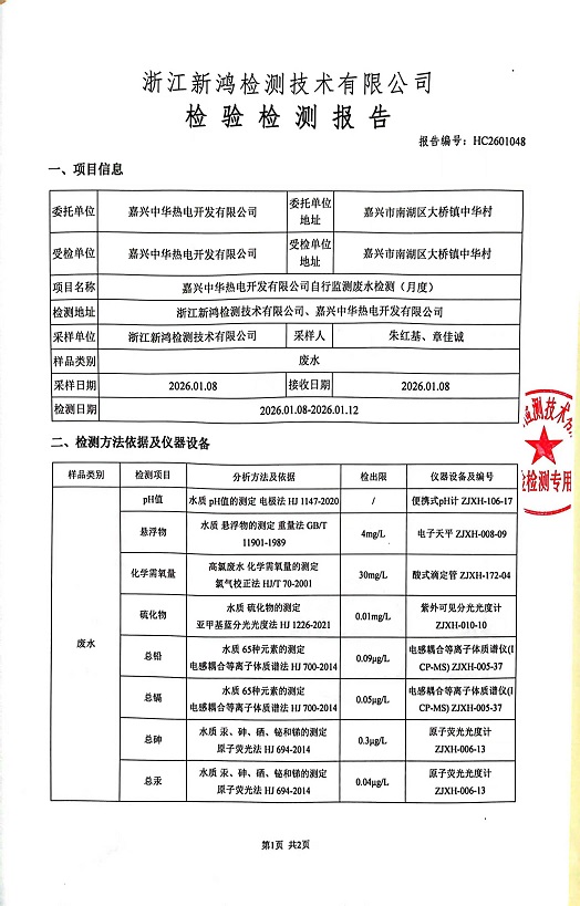 - 中華熱電26年1月廢水檢測(cè)報(bào)...