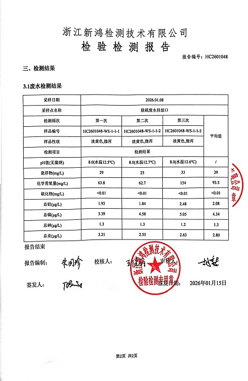 報(bào)告名稱(chēng):中華熱電26年1月廢水檢測(cè)報(bào)告