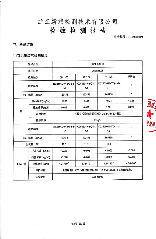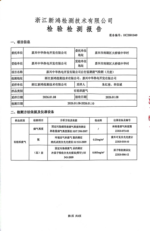 報(bào)告名稱:中華熱電26年1月廢氣檢測報(bào)告