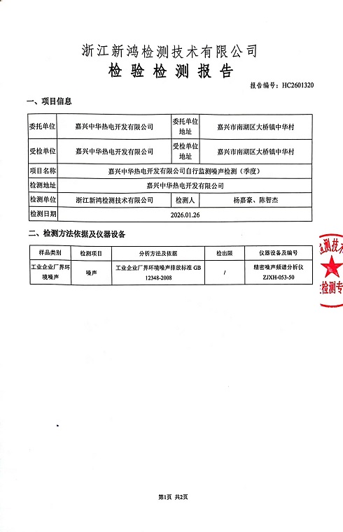 報告名稱:中華熱電26年1季度噪聲檢測報告